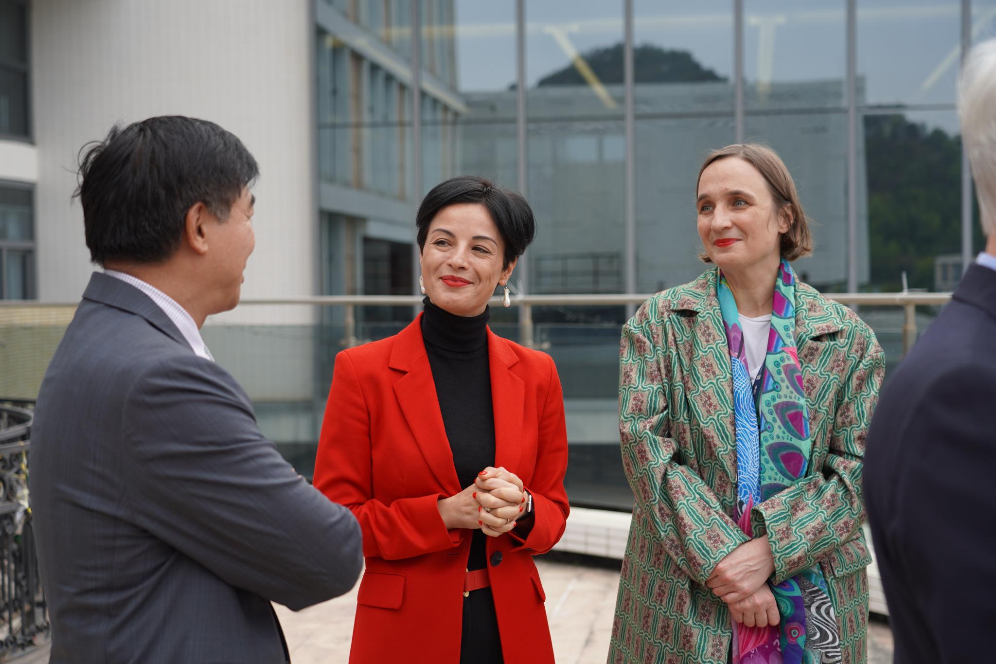 UIC President Prof Tang Tao warmly welcomed Mrs Lucia Pasqualini and Mr Giorgio Daviddi to UIC's beautiful campus. Prof Adrian Bailey, UIC Associate Vice President (Internationalization) and Dean of the Division of Humanities and Social Sciences, joined the warm welcome.