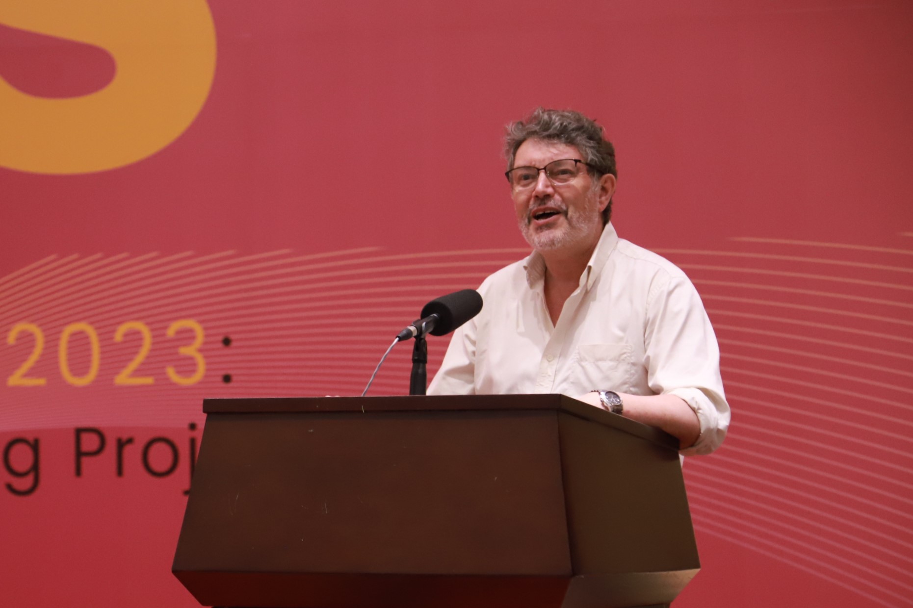 Associate Dean for Teaching and Learning of FHSS Prof John Corbett congratulated students for completing their FYP successfully and encouraged them to master what they have learned at the College and generate creative ideas in the age of AI.
