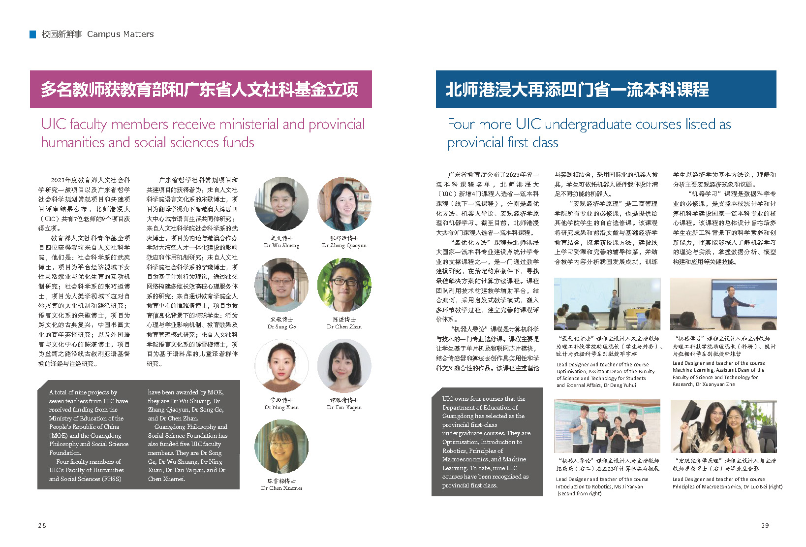 The magazine is comprised of three sections. The first section is a feature story Leaping forward that demonstrates UIC's milestones in terms of academics, talent cultivation, technological innovation, cultural heritage and more.