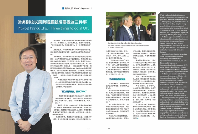 The second section begins with an interview with UIC Provost Prof Patrick Chau and then focuses on the fruitful results of UIC graduates in further studies and the contributions of teachers to the development of UIC.