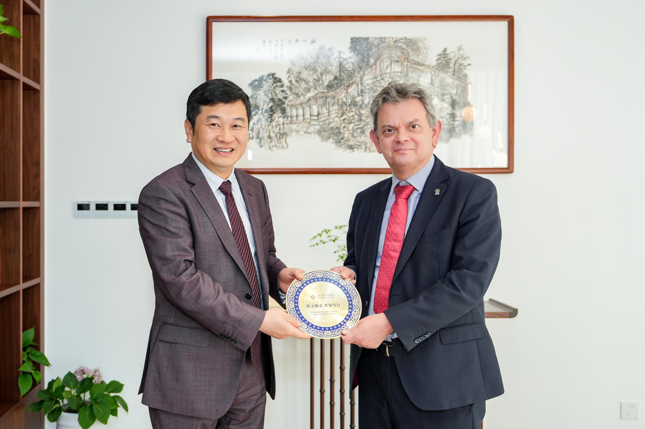 UIC President Prof Chen Zhi presents a souvenir to the delegation from the University of Glasgow