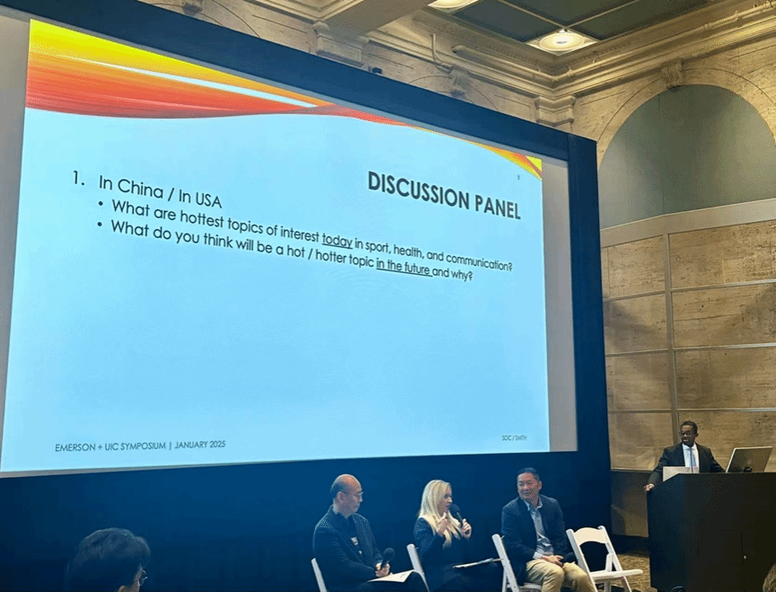 The Emerson-UIC Symposium on Sports, Health & Communication was held at the Bill Bordy Theater in Boston, Massachusetts on 14 January 2025 Boston local time. Over sixty students and faculty members from Emerson College and UIC gathered to share insights into the intersections of sports, health, and communication, as well as their global implications for well-being.