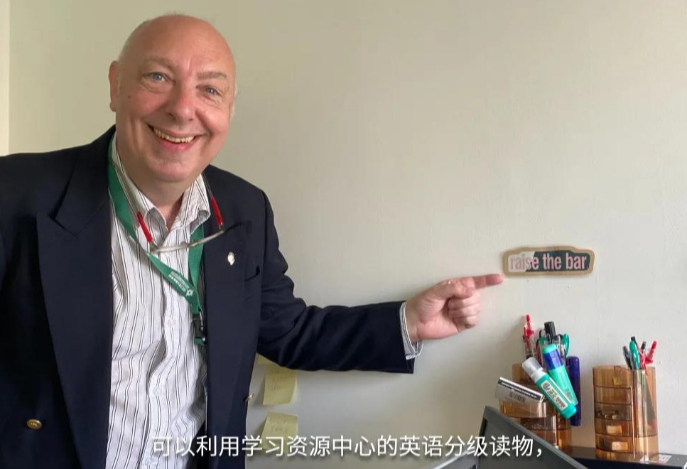 ELC lecturer, Mr Kirk Glass, organised the English course material books systematically. He uses the width of two palms to describe the thickness of the books that he has read. Mr Glass is thrilled to tailor a reading list for his students based on their English reading ability.