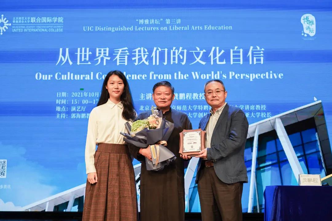 Prof Gong Pengcheng, distinguished professor of Peking University and Beijing Normal University, delivered a speech about Chinese cultural confidence from the world's perspective on 15 October. It was the third of UIC's Distinguished Lectures on Liberal Arts Education.