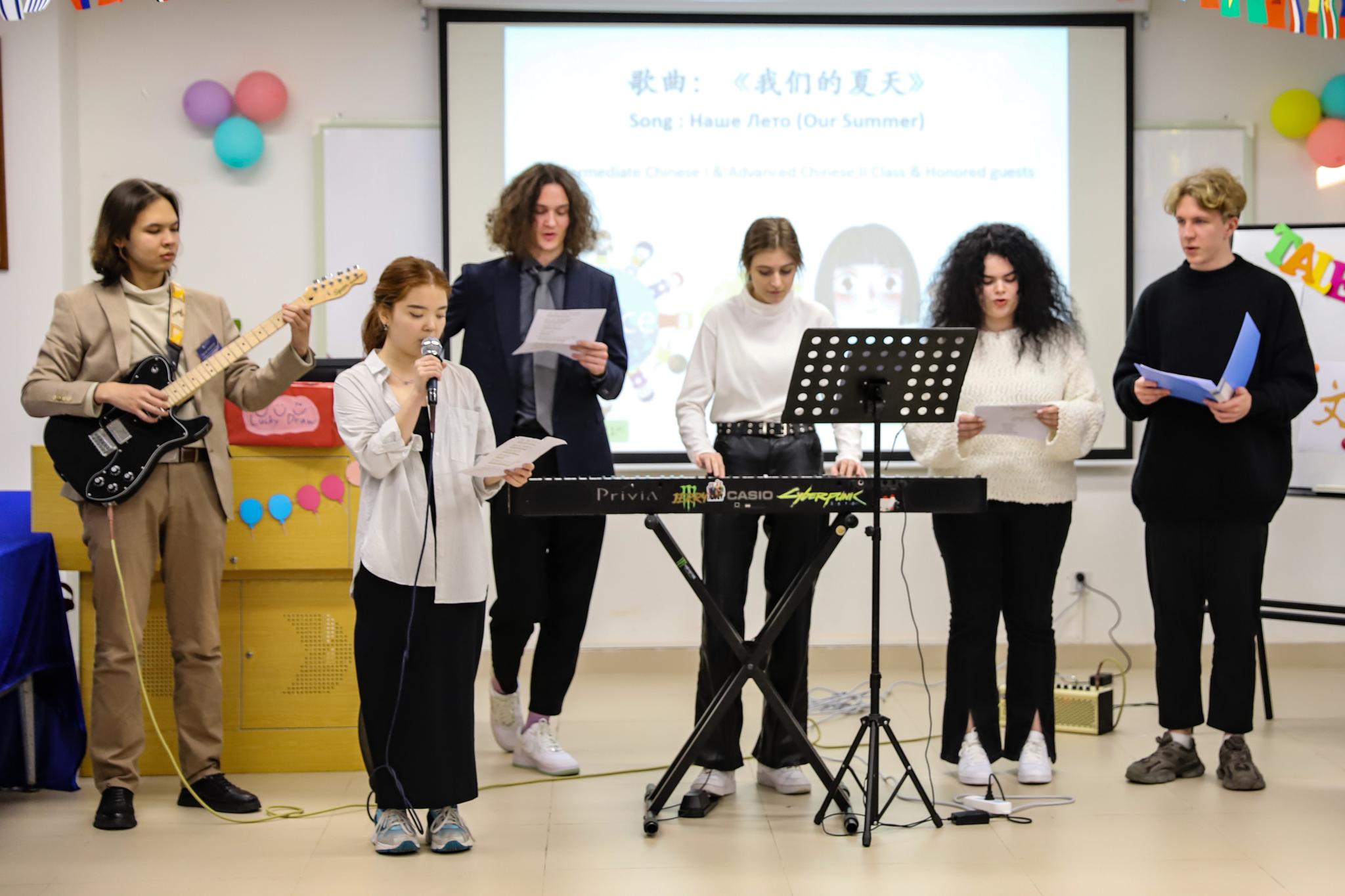 A group of Russian-speaking students from different Chinese classes perform a Russian-Chinese rendition of "наше лето (Our Summer)", singing for love and peace