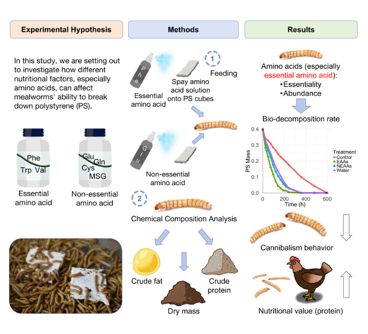 作为北师港浸大与香港浸会大学联合开展的研究项目的成果之一,该论文发现,黄粉虫体内氨基酸的必需性和丰度显著影响着其降解塑料的速率,同时水与单一游离氨基酸溶液均能有效减少黄粉虫的同类相食行为,并增强其营养价值。这些发现为提高黄粉虫降解塑料效率提供了更科学的依据。