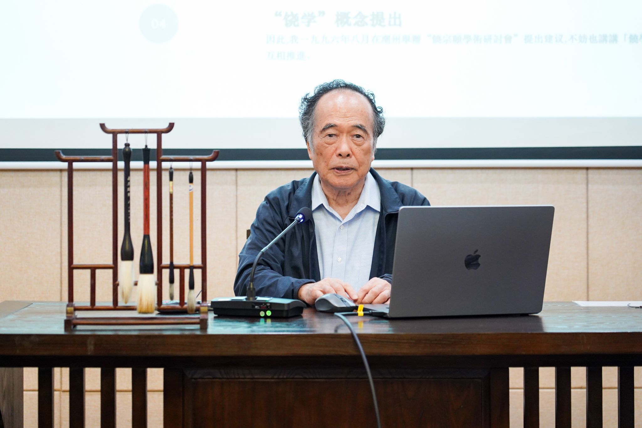 本次讲座为“饶宗颐诗词”专题讲座第一讲,施议对教授在介绍中国诗歌传统和发展历程、步韵形式的基础上,以饶宗颐步韵和周邦彦《六丑·蔷薇谢后作》作《六丑·睡》为例,指出饶宗颐借词体原型将诗词中的情思提升至哲学高度。