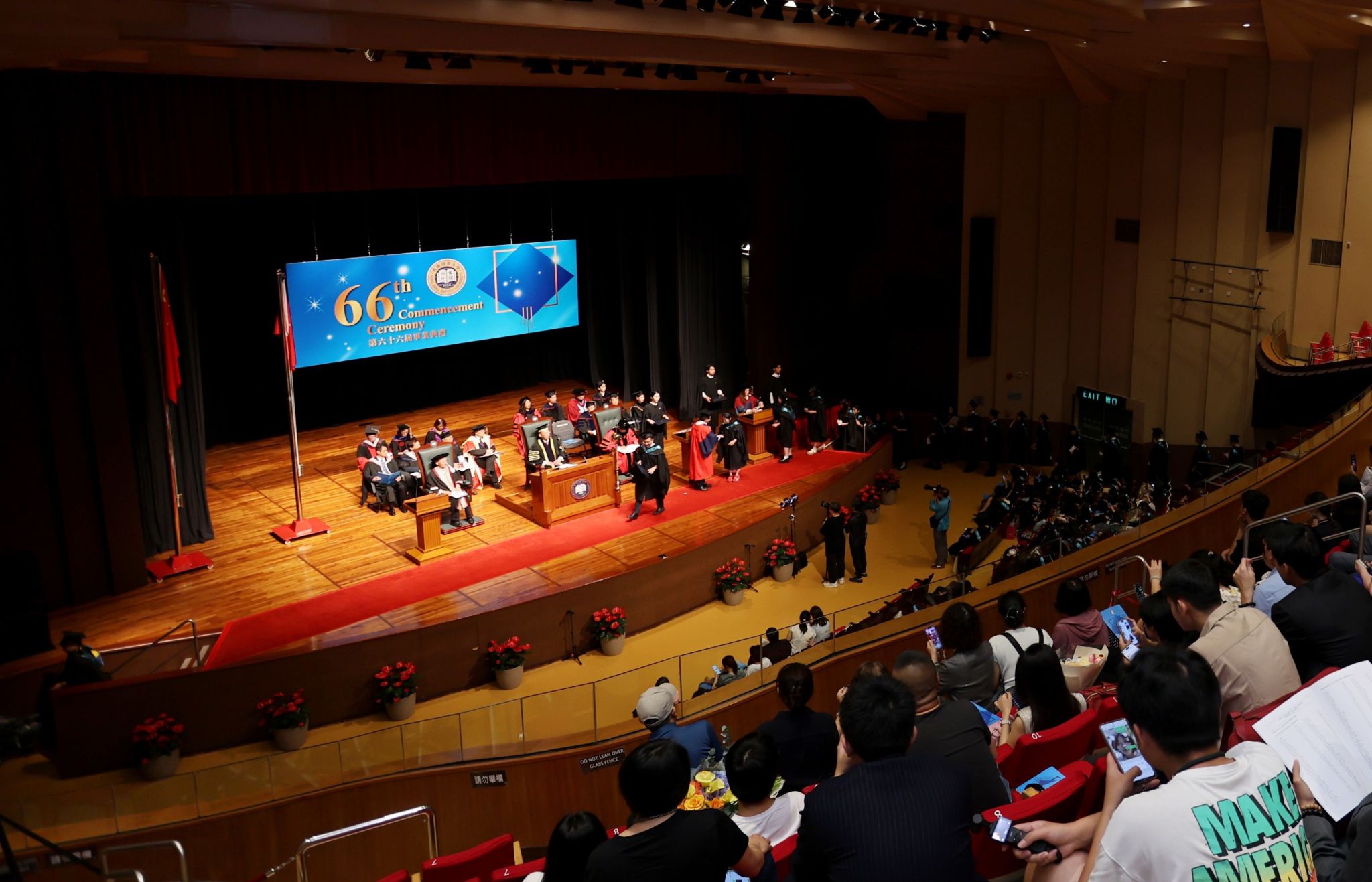 北师港浸大校长陈致教授,常务副校长周荫强教授,党委书记、副校长(行政)毛亚庆教授,协理副校长(教与学)、研究生院院长黄煜教授,协理副校长(学生发展)左龙佩兰教授、教务长李建会教授,工商管理学院院长吴盖宇教授,人文社科学院副院长(研究与发展)赵晓斌教授,理工科技学院署理院长叶华军教授,文化与创意学院院长庄以仁教授,研究生院副院长侯远坦博士等一众师长出席本次毕业典礼。