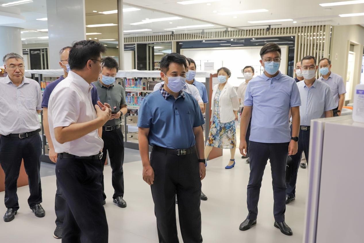 黄志豪市长在汤涛校长的陪同下参观校史展、学习资源中心等