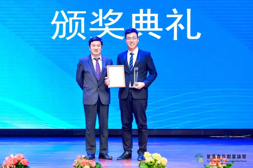 陈致教授为“植人一生”团队颁发“菁牛汇”杯UIC创新创业大赛金奖