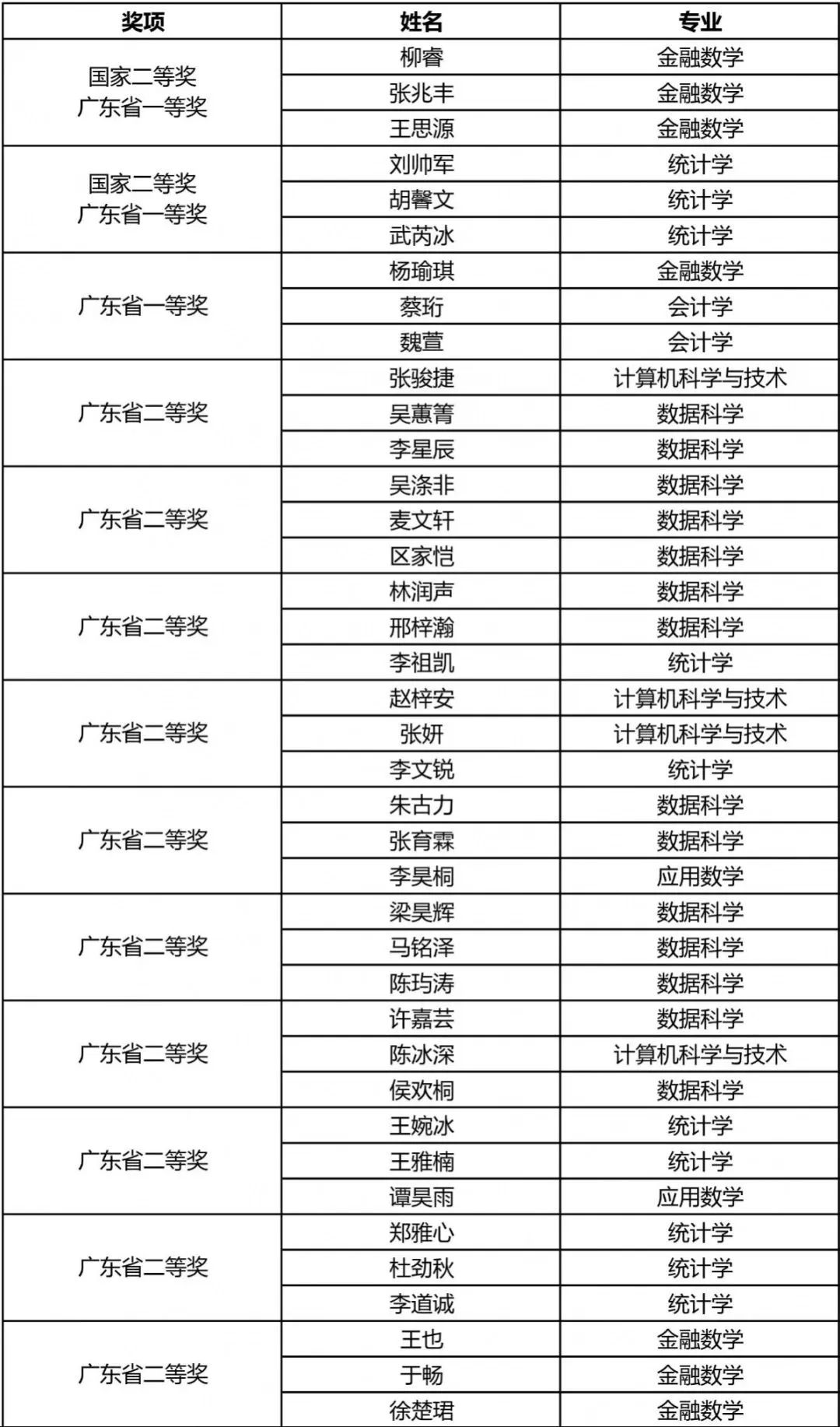 2022年全国大学生数学建模竞赛结果近日公示,北师港浸大(UIC)学子表现优异,荣获多个国家和省级奖项。其中,2019级统计学专业的刘帅军、胡馨文、武芮冰,2020级金融数学专业的柳睿、张兆丰、王思源两队同学同时获得国家级二等奖和广东省一等奖。