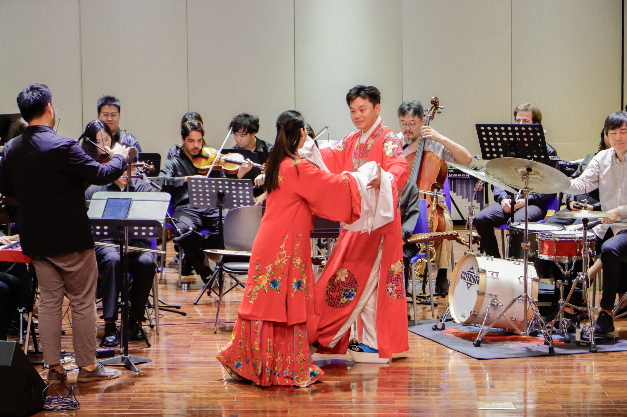 而当传统戏曲遇上流行乐,又会碰撞出怎样的火花?音乐会正式开始前,北师港浸大音乐系师生以乐会友,携手戏曲界嘉宾,与乐团合作呈上一场穿越古今、跨越山海的交流表演。爵士×粤剧《花好月圆》、放克×京剧《苏三起解》,以及打破苍凉激越印象的爵士×秦腔《麻鞋底》,一系列极具创意的改编让人耳目一新,赢得台下掌声连连。