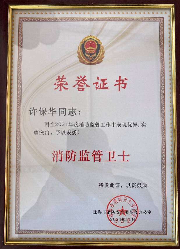 近日,珠海市消防安全委员会举行2021年“119”消防宣传月启动仪式,并对一批长期以来关心支持消防工作和在消防工作中表现优异、实绩突出的集体和个人予以通报表扬,北师港浸大(UIC)荣获2021年度“最美热心消防事业先进集体”、物业管理处副处长许保华荣获2021年度“珠海市十佳消防监管卫士”、高级校园安全主任刘立鹏荣获2021年度“最美热心消防事业先进个人”。
