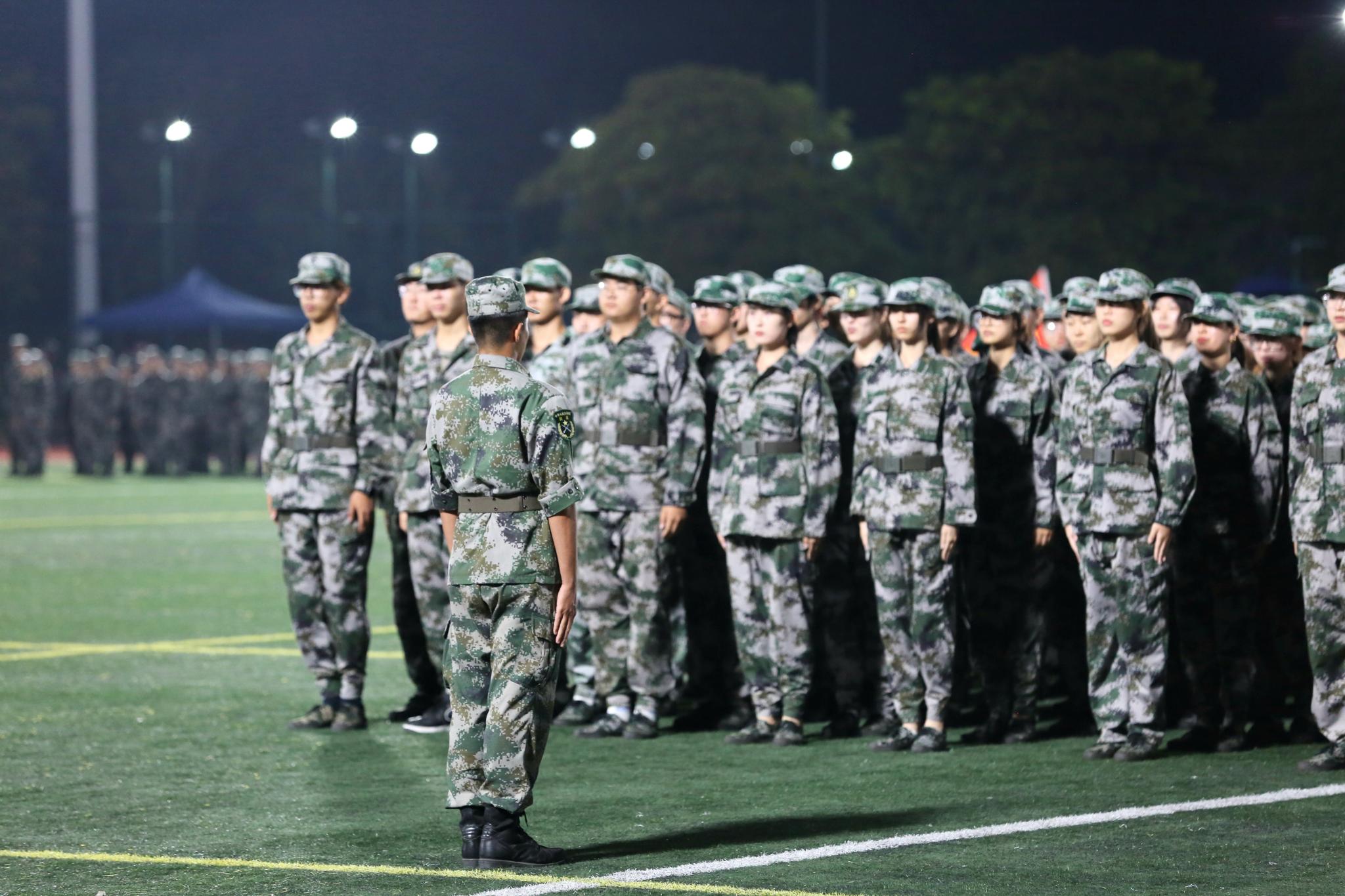 近日,北师港浸大(UIC)大一学生完成军训,在体育公园田径场举行汇报表演。