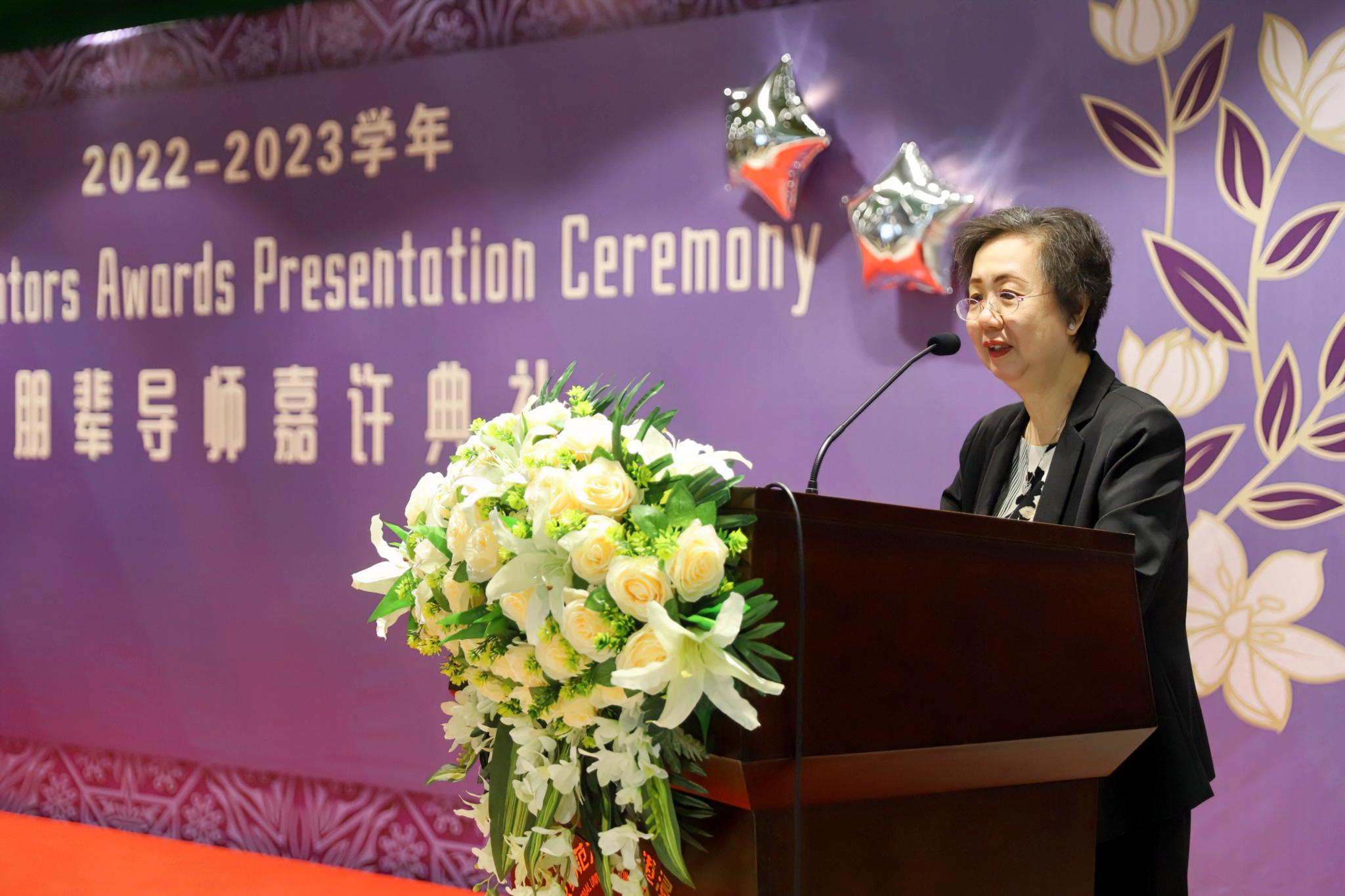 袁美珍博士(左一)为文化与创意学院优秀朋辈导师代表颁奖