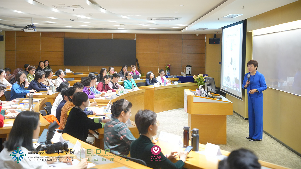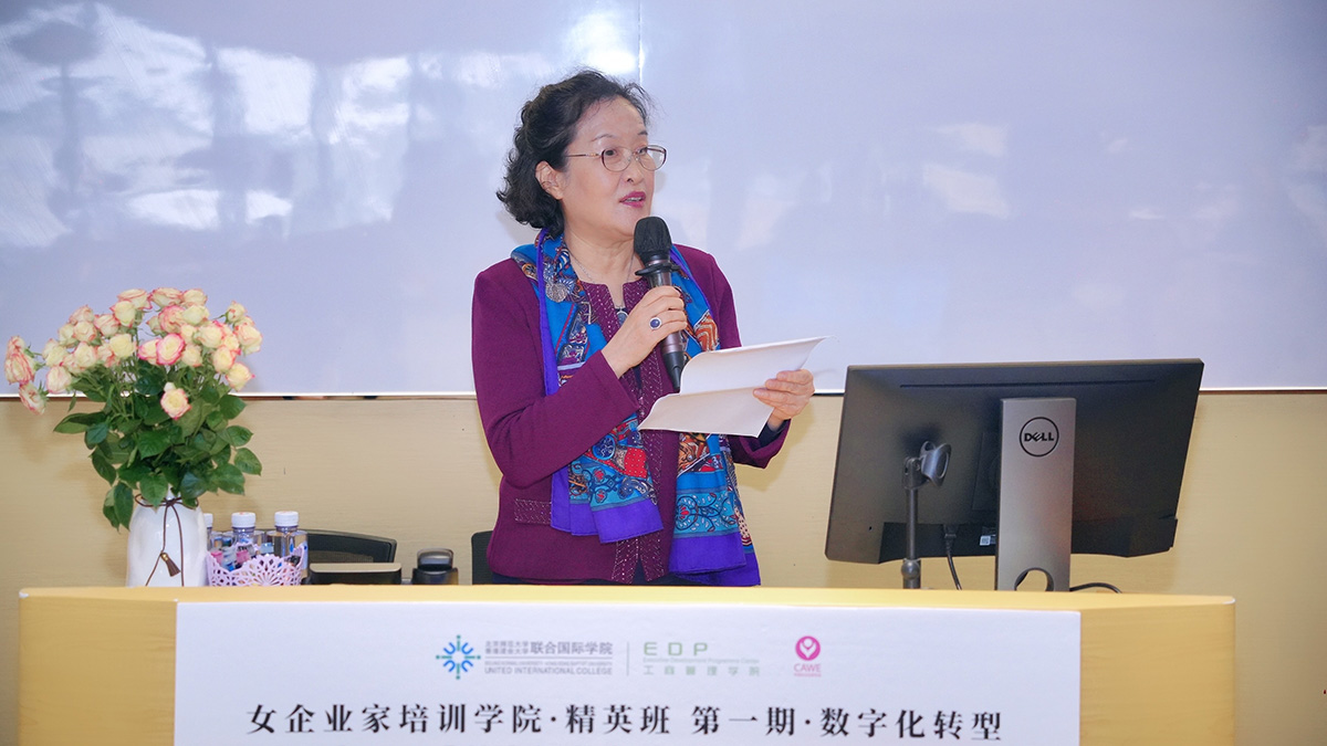 女企业家学员们聆听了由UIC工商管理学院副教授柴俊毅主讲的“企业数字化转型与创新发展”、助理教授胡喆华主讲的“女性领导力:完善自我 成就组织”,金山集团副总裁龚道军主讲的“从石斧到AI:一种技术观”,分众传媒集团战略研究院院长、中国传媒大学客座教授陈岩主讲的“新经济形势下企业如何韧性增长,穿越周期”等系列专题讲座。