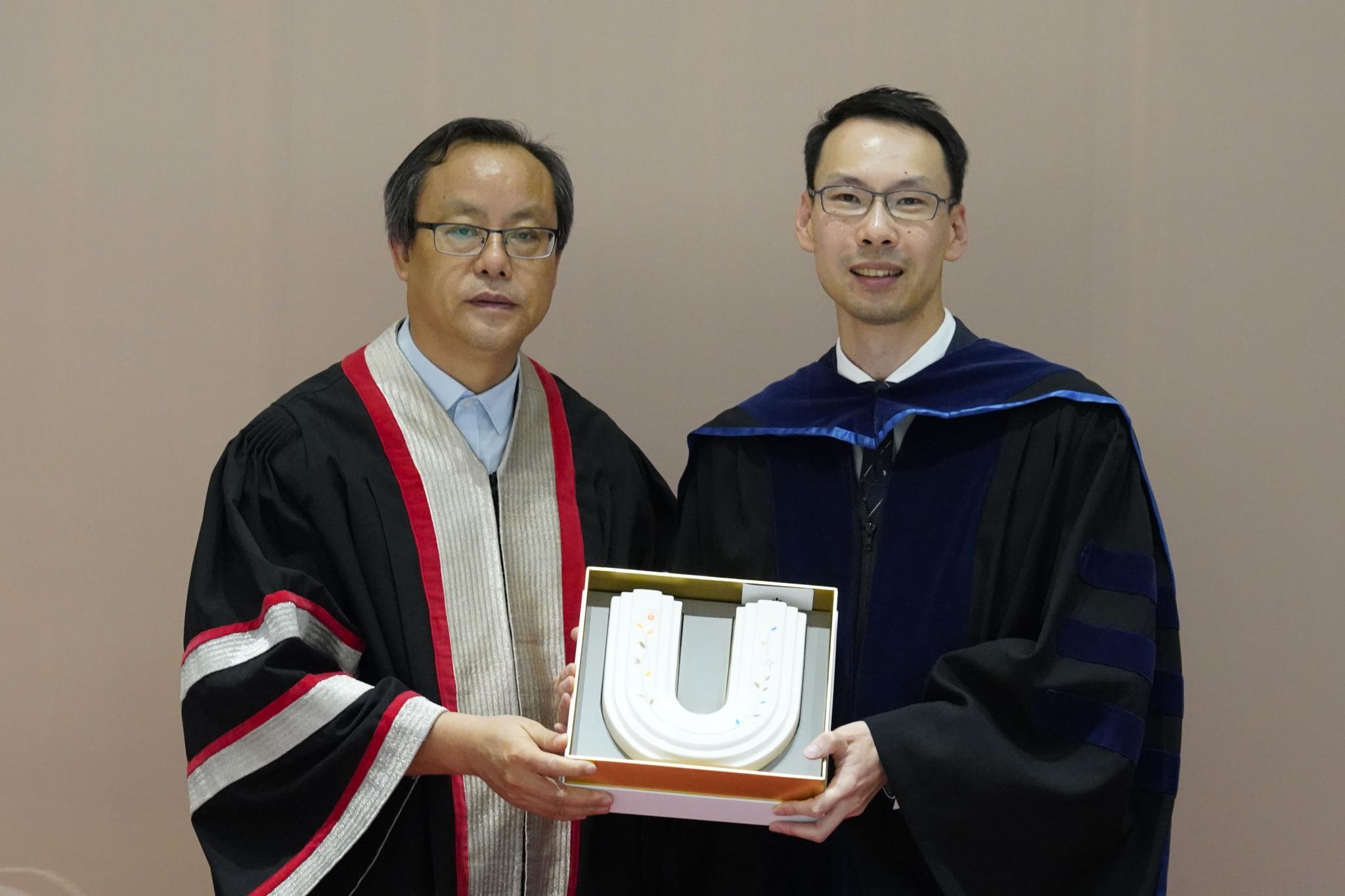 党委书记、副校长(行政)毛亚庆教授向梁思杰先生赠送纪念品