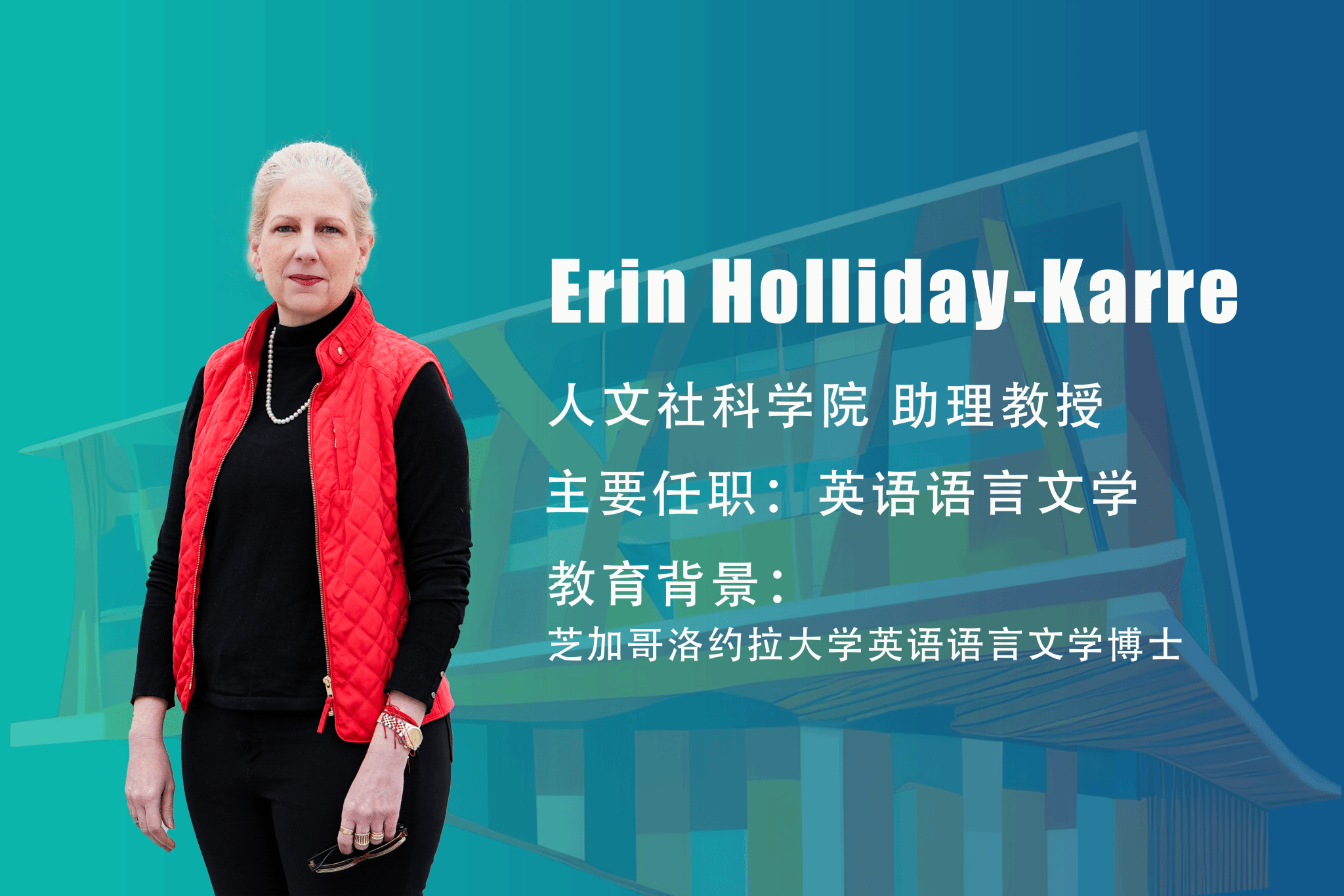 Holliday-Karre博士曾在美国和卡塔尔任教多年,去年7月份,她首次来到中国,在北师港浸大人文社科学院担任助理教授。