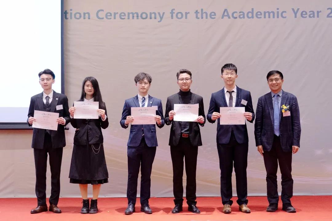 副校长(行政)毛亚庆教授(右一)为部分国家奖学金获奖者颁奖