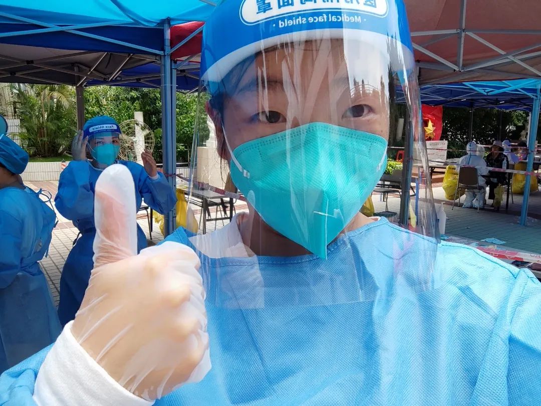 高考完的第二天,我报名成为了广州抗疫志愿者,主要负责大规模核酸检测的扫码和疫苗接种点现场秩序的维护等志愿工作。当时正值广州炎热的盛夏,虽然我们的防护服比医护人员穿的“大白”要薄一些,但穿着防护服、戴着橡胶手套,还是闷出了一身汗,一天下来又热又累。