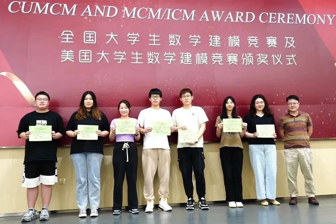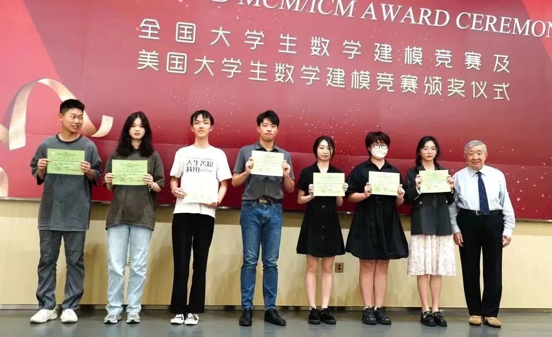 潘建新教授(右一)为美赛一等奖获奖同学颁奖