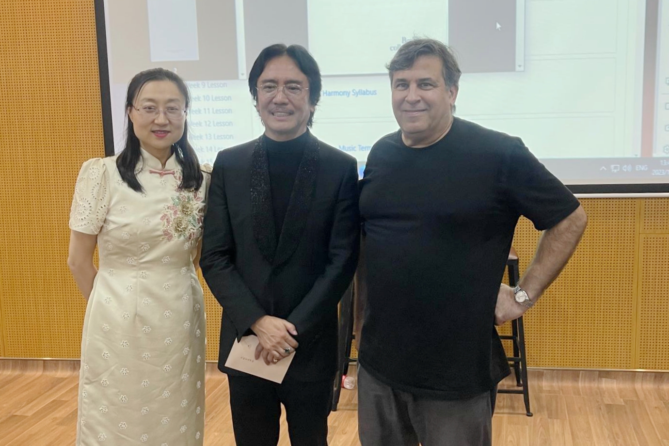 汪洁老师、音乐系主任Tom Stein教授(右一)和中国知名原创音乐剧制作人李盾(中)合影