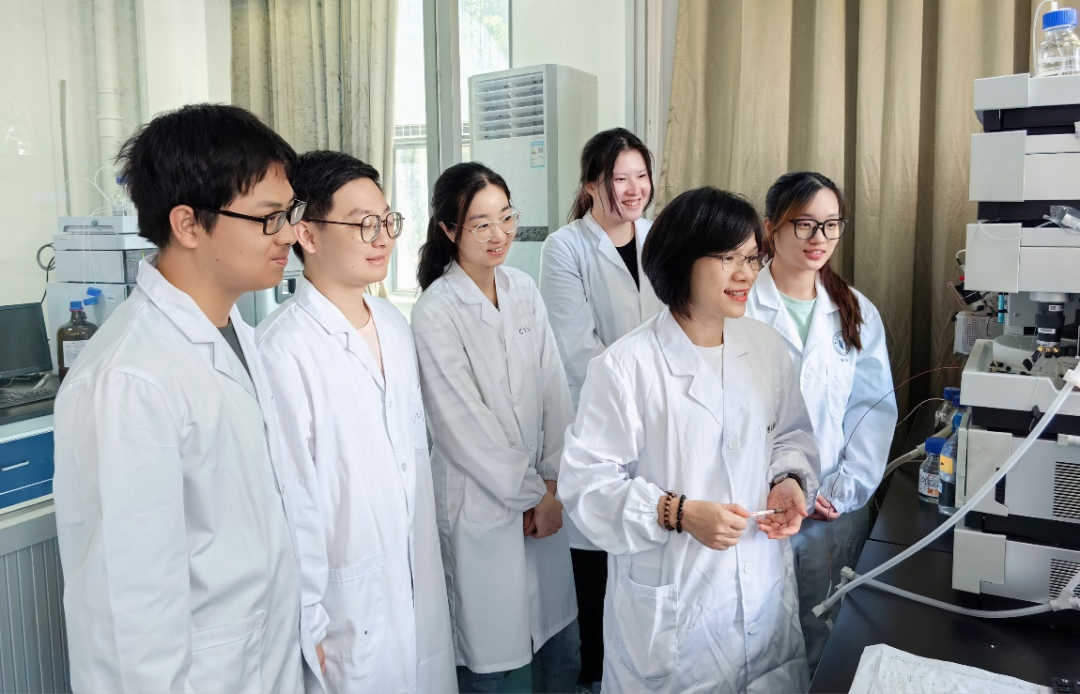 粤港澳新药筛选联合实验室毕惠嫦教授(右二)指导学生开展实验