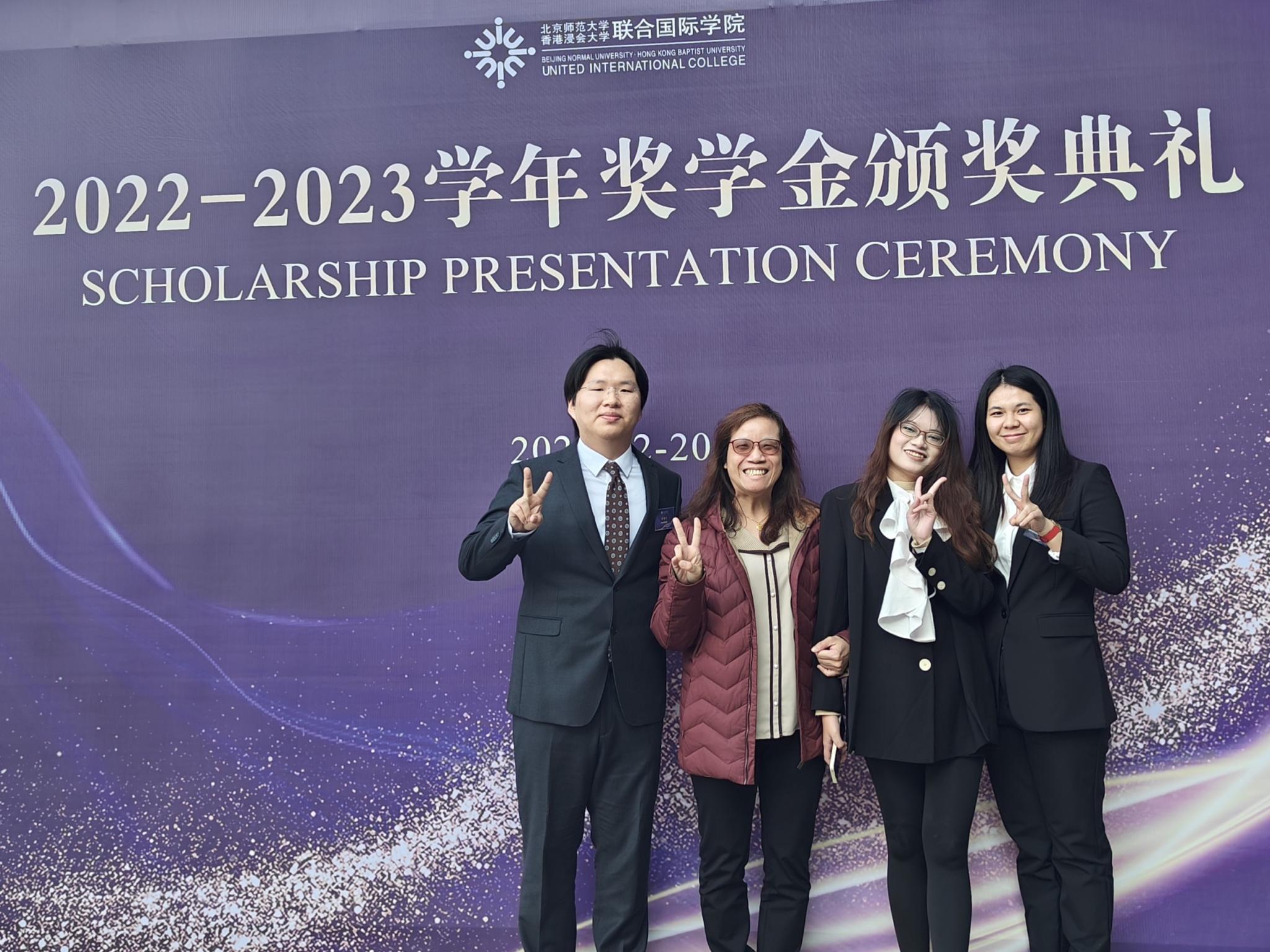 杨佳宁(左一)大学期间多次获得奖学金