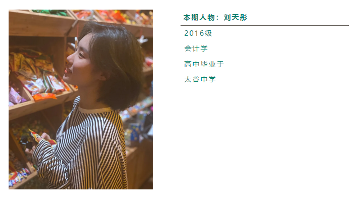 大学四年,对刘天彤来说是一个变勇敢的过程,她不再害怕失败,而是更在意自己在努力过程中的收获。她把王小波的一段话送给蜕变的自己,也与学弟学妹们共勉:“一个常常在进行着接近自己限度的斗争的人总是会常常失败的。人类本身也有自己的限度,但是当人们一再把手伸到限度之外,这个限度就一天一天扩大了。”