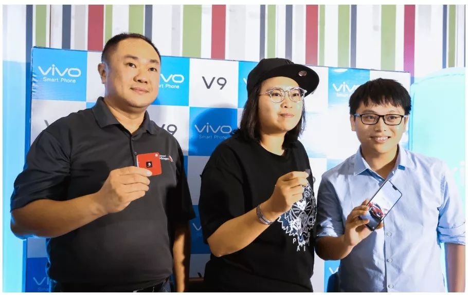 V9上市时,刘庭银(右一)与同事接受菲律宾主流媒体的采访