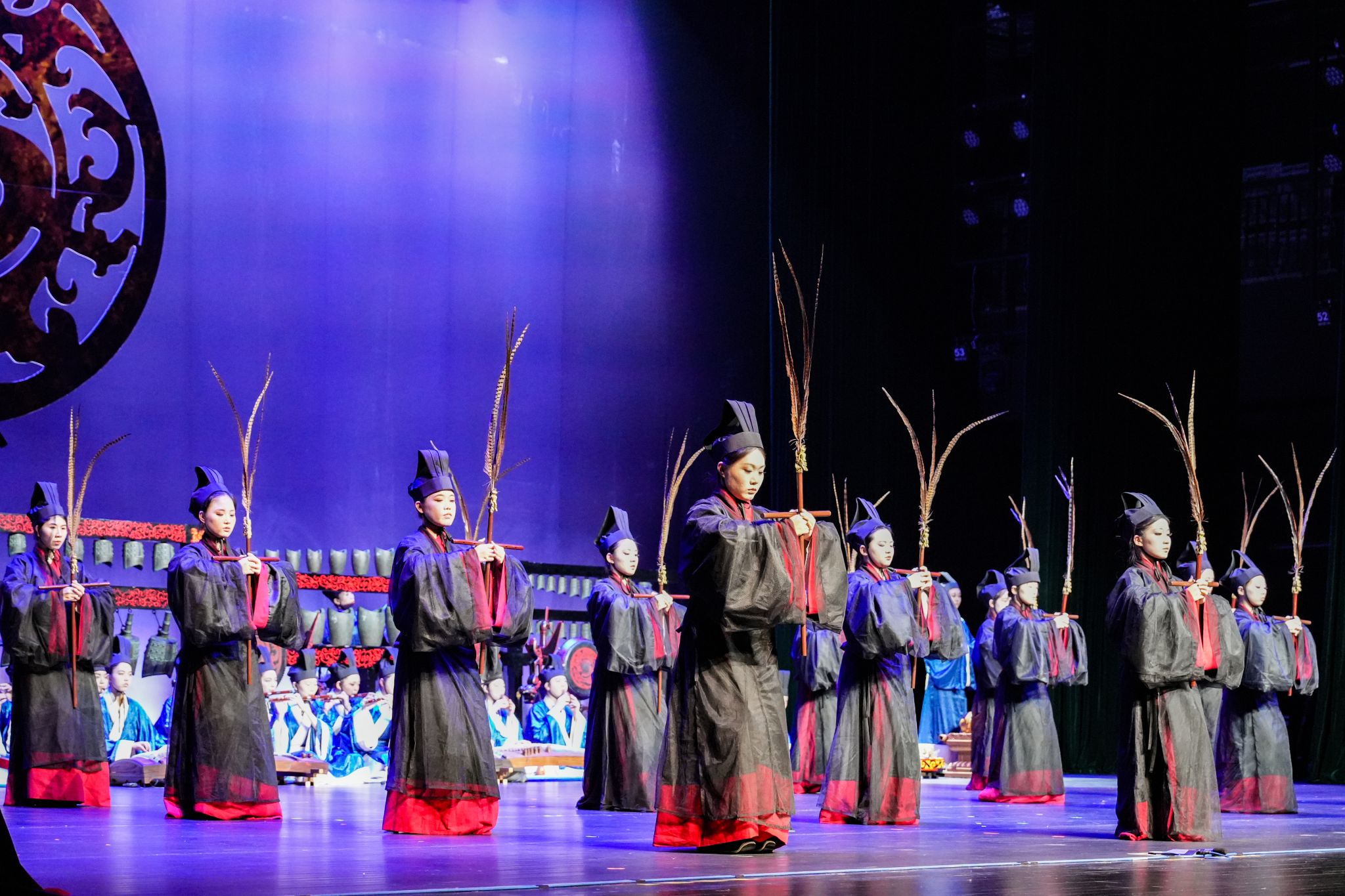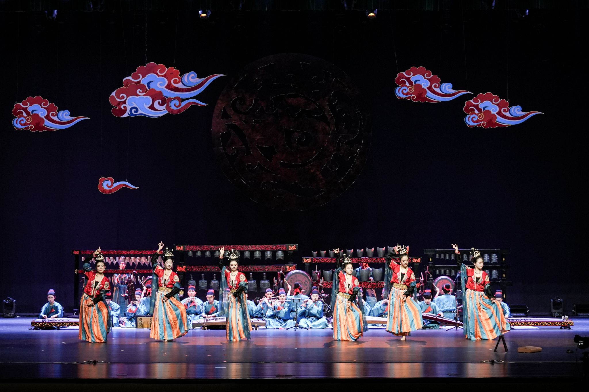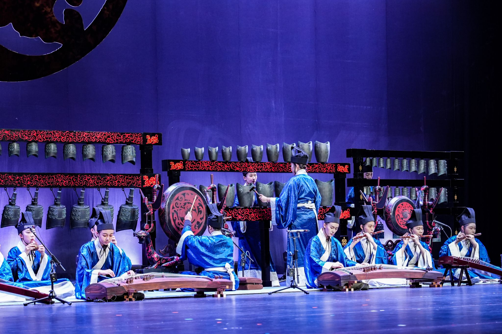 在首演中,北师港浸大玉振金声雅乐团运用编钟、编磬、句鑃、瑟、建鼓等中国古代乐器,融合礼仪、乐舞带来了14个节目,既有庄严肃穆的仪式音乐,又有轻歌曼舞的宴享之景,以及绵延悠长的情歌和弦,带领观众穿越千年流光,感受金石丝竹之音和天仙窈窕之姿。