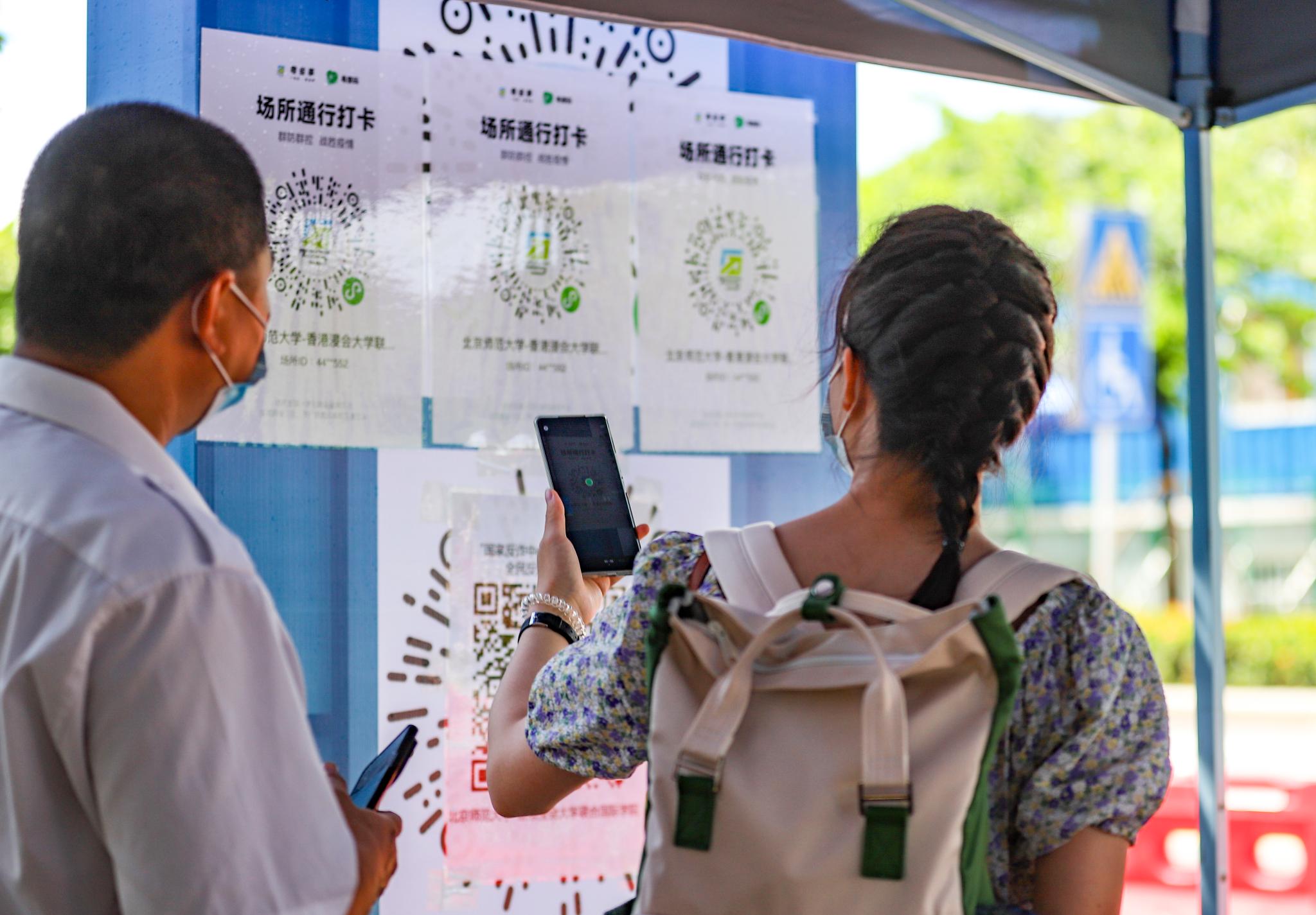新生在报到前可通过企业微信查询入校核酸要求,并在学校迎新网激活学生电子帐号、上传身份信息,提高报到当天服务效率。新生到校时需进行测温、身份识别、查验“两码”。学校在新生报到现场也准备了一次性口罩、消毒免洗洗手液等物资供新生取用,为新生入校提供便利。