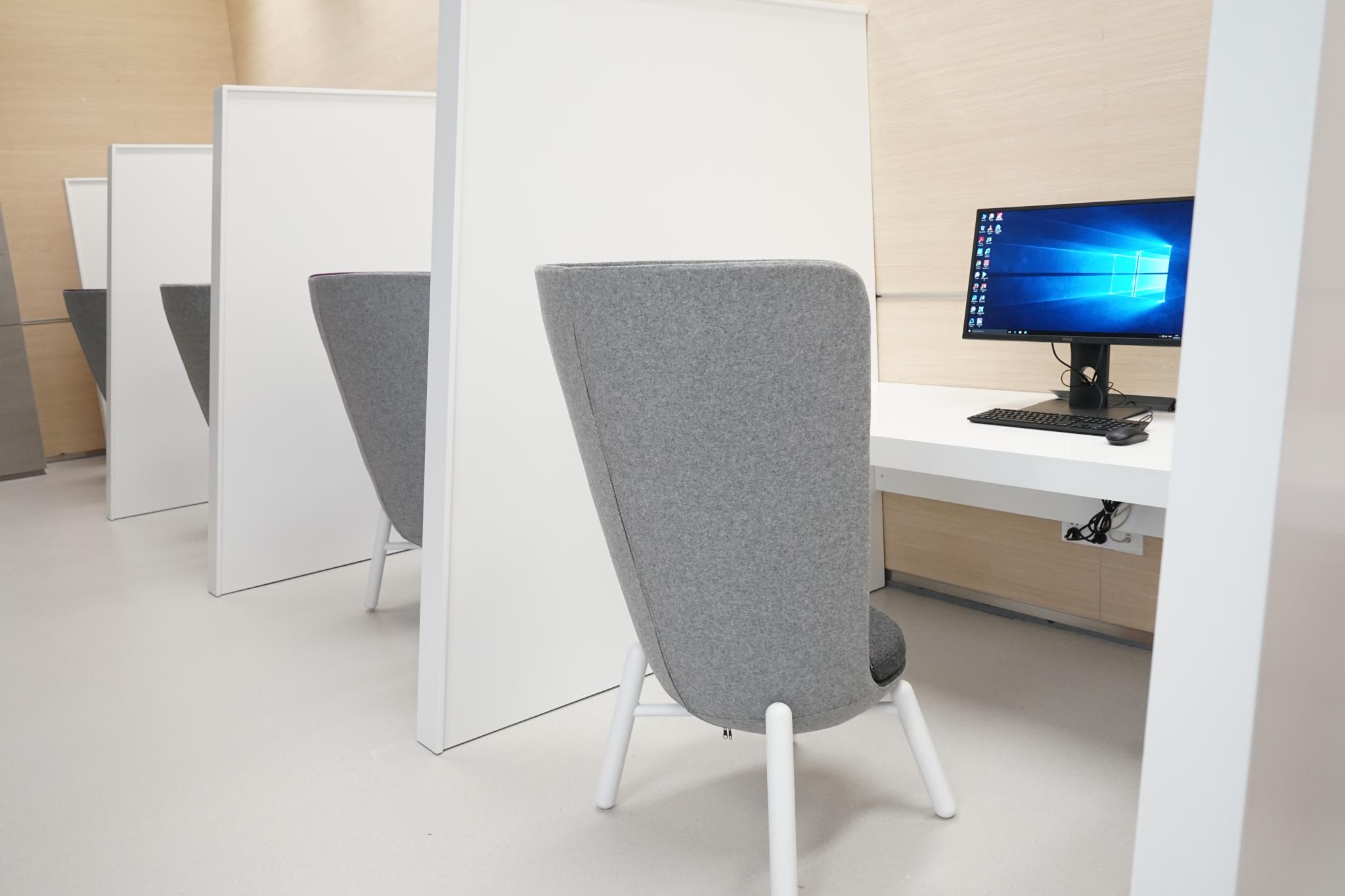 静音舱是一大亮点,学生可以使用MET系统练习英语口语。高分子隔音材料组成多重音障,无需担心影响其他同学。内部空气每三分钟刷新一次,保证舒适体验。