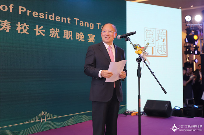 北京师范大学副校长周作宇教授代为宣读了北京师范大学程建平书记和董奇校长联名贺信。信中说道,汤涛校长洞悉国内外高等教育发展趋势,具有卓越的领导才能和改革魄力,曾在多校领导大学发展。汤涛校长曾作为首届校董会成员参与北师港浸大创建工作,为学校的创立和发展做出了重要的贡献。在他的领导下,北师港浸大将咀母体校精华,写崭新篇章,为中华民族伟大复兴和国际高等教育发展贡献力量!