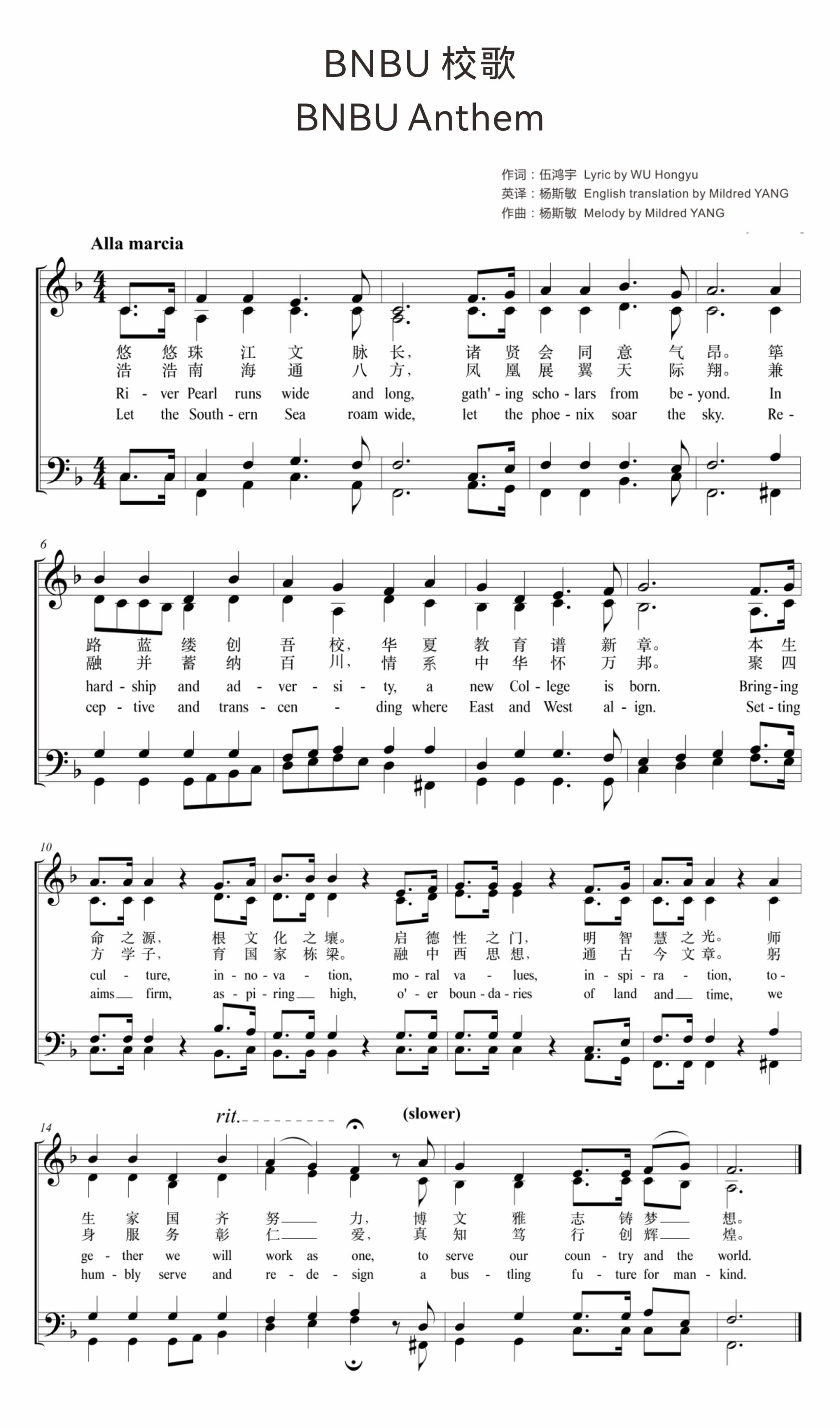 The motto "In knowledge and in deeds, unto the whole person" represents the ideals, spirits and values that the BNBU community upholds. BNBU's Liberal Arts Education aims to cultivate students' minds, personalities, and ability to learn extensive knowledge actively. It encourages students to think critically and be persistent when they are seeking knowledge and truth and comprehend in a higher level that is not only literal but meaningful. BNBU views the students as the heart of the university; therefore, it hopes that each student can become a "whole person" that is "in knowledge and in deeds."