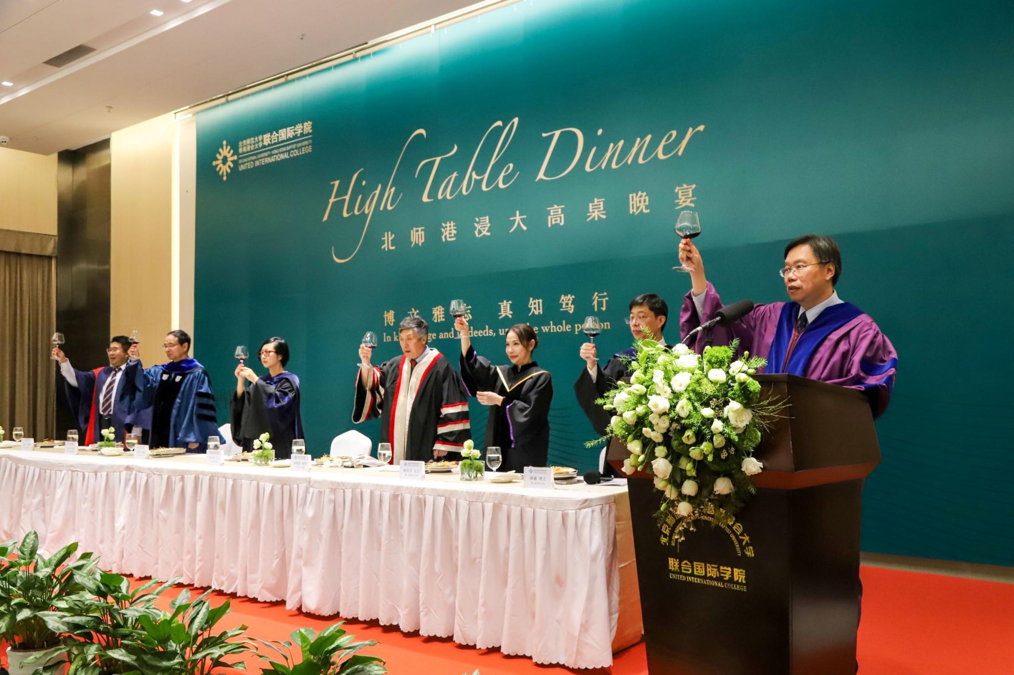 Prof Patrick Chau toasts at a high-table dinner