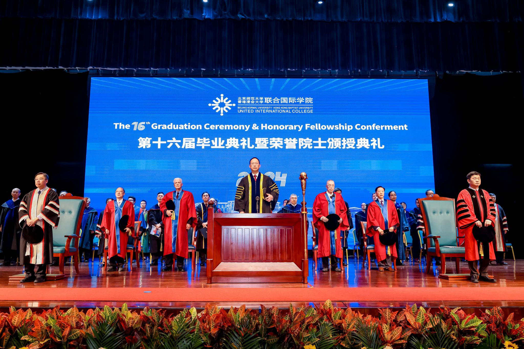 UIC President Prof Chen Zhi spoke at the award ceremony. He said that UIC expects the students to actively assume social responsibility while demonstrating their interdisciplinary skills and learning from the four Honorary Fellows.