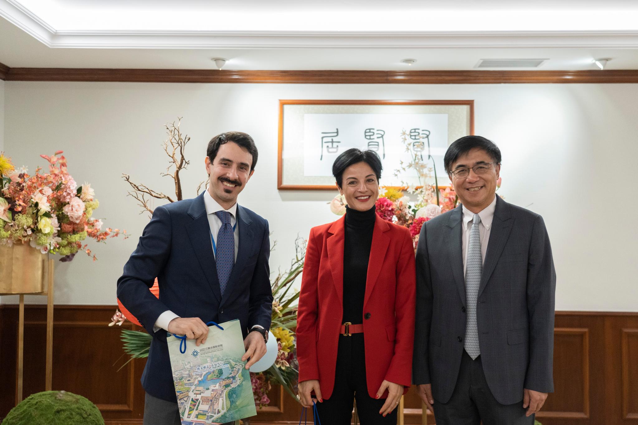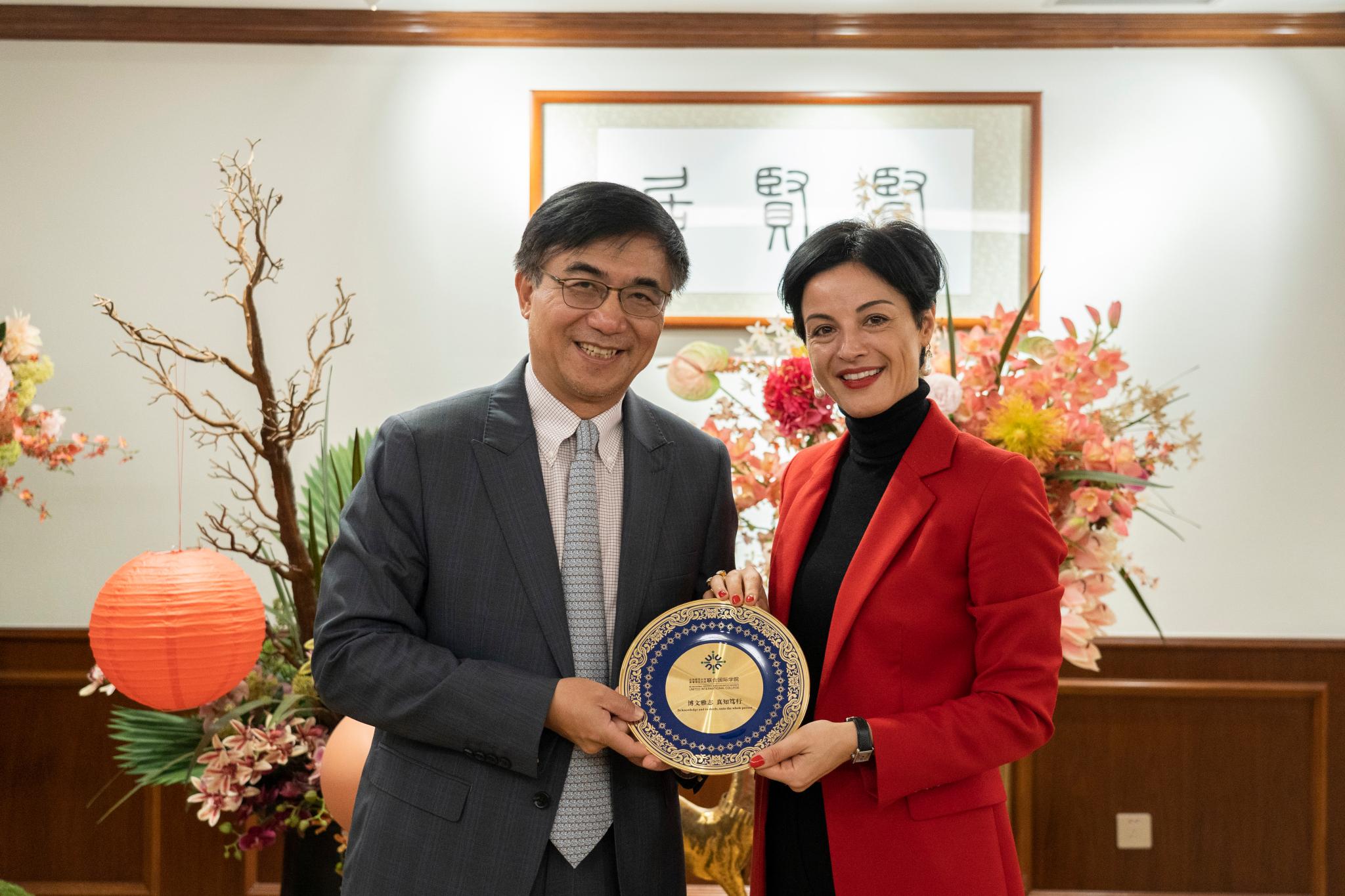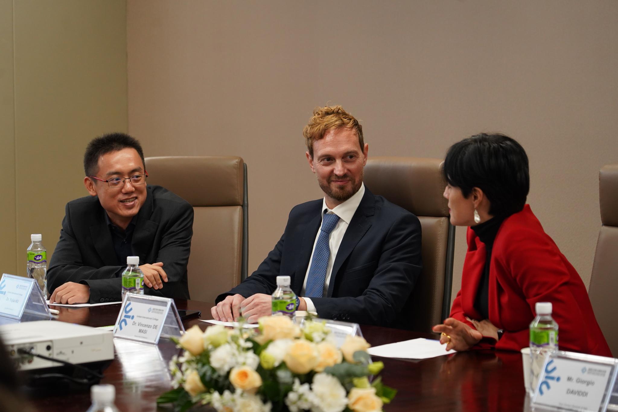 UIC President Prof Tang Tao warmly welcomed Mrs Lucia Pasqualini and Mr Giorgio Daviddi to UIC's beautiful campus. Prof Adrian Bailey, UIC Associate Vice President (Internationalization) and Dean of the Division of Humanities and Social Sciences, joined the warm welcome.