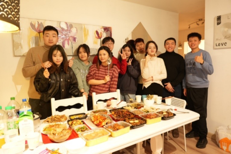 Yu was exchanged to France during the holiday and cooked with other exchange students on Chinese New Year's Eve, preparing themselves a feast.
