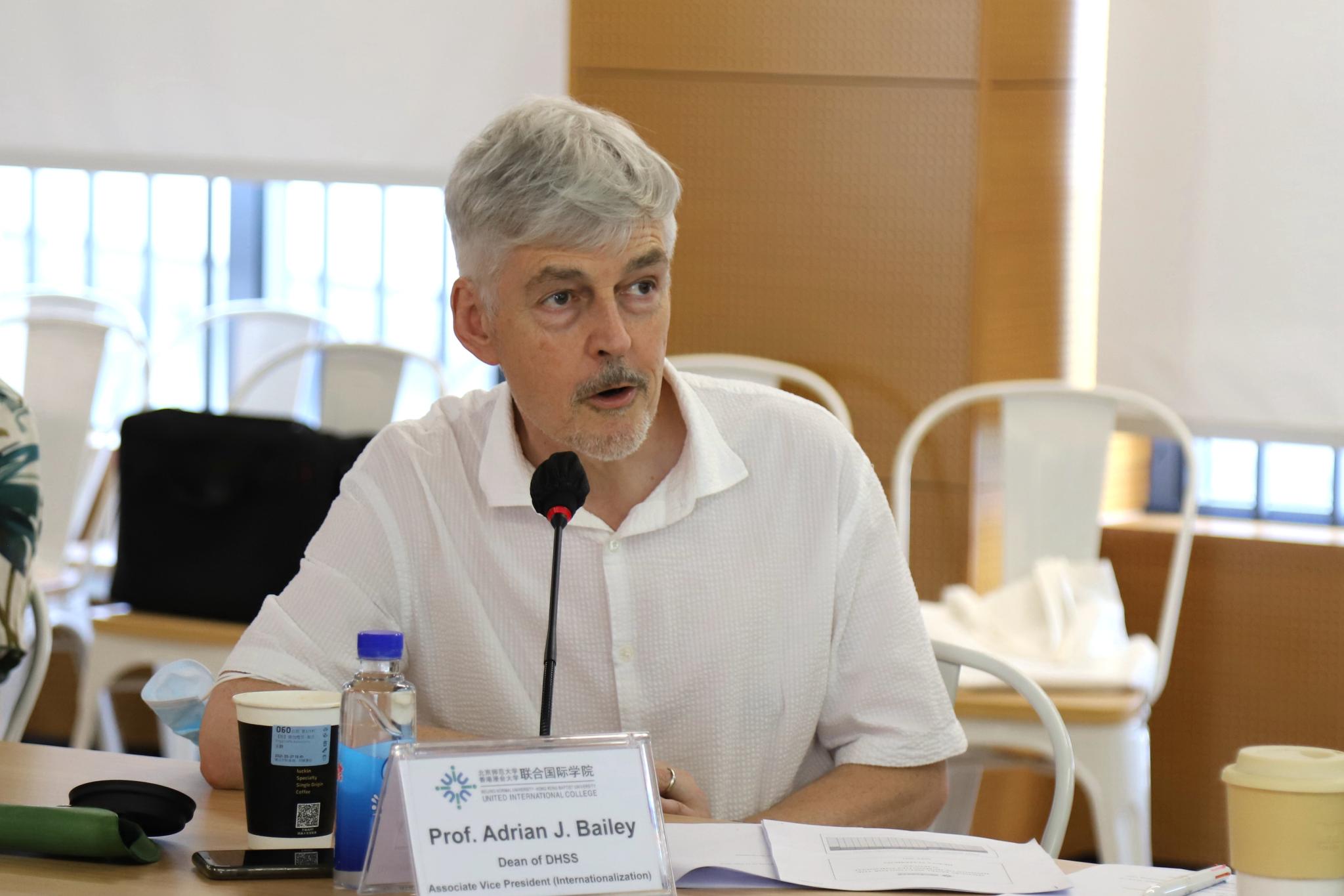 Prof Adrian Bailey introduced the faculty, the development of graduates, achievements made by students in competitions and faculty's research results to the Committee. In addition, he introduced the five-year development plan of DHSS in detail, before mentioning that DHSS would keep in line with UIC and enhance its research capability and competitiveness.