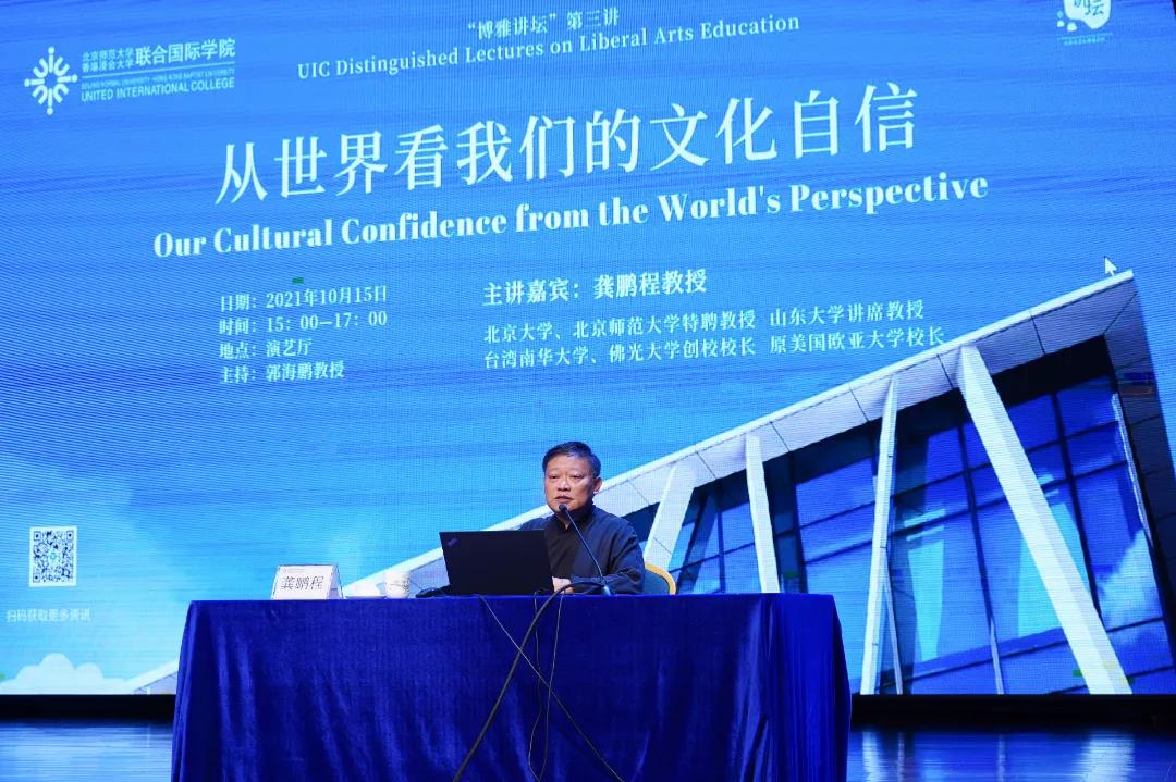 Prof Gong Pengcheng, distinguished professor of Peking University and Beijing Normal University, delivered a speech about Chinese cultural confidence from the world's perspective on 15 October. It was the third of UIC's Distinguished Lectures on Liberal Arts Education.