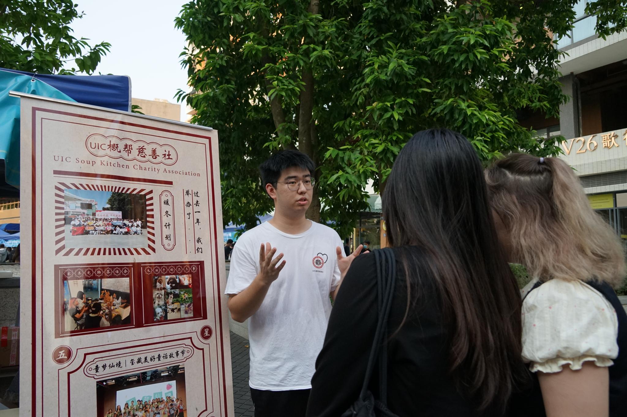 UIC Soup Kitchen Charity Association President Cao Hengyuan introduces the club at the recruitment site