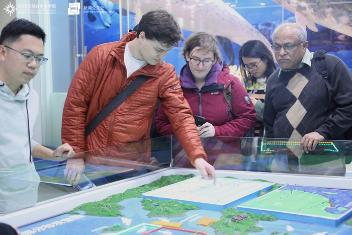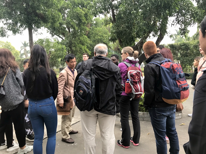 On 16 January, the delegation from the University of Alberta explored areas on Qi'ao Island. WPEO Facilitator II, Ms Sara Mo, guided the group and provided translation. First, they went to the Chinese White Dolphin Science Museum and learned about the white dolphin population in the South China Sea. The representative from the museum and the students discussed different factors that affect the dolphins. Next, they walked through the mango forest and learned about the vegetation on Qi'ao Island. Finally, they visited the local village and walked along the white stone road while learning about the villages' history.