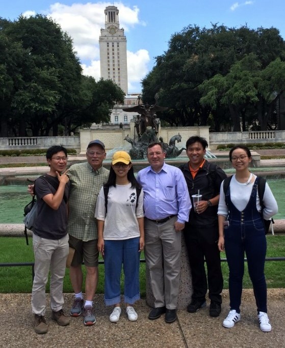 Wanqi and others outside the Main Building at the University of Texas in Austin