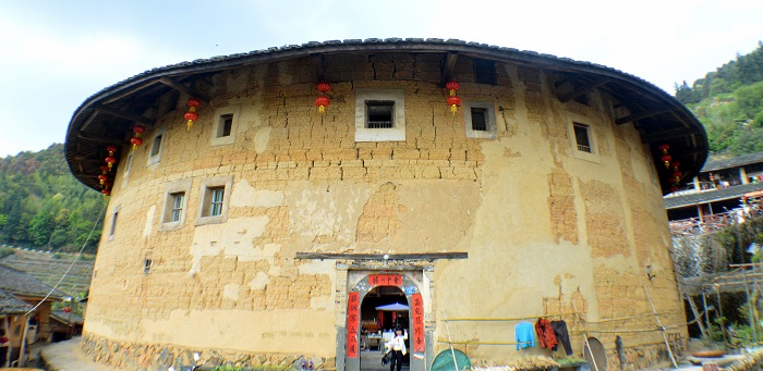 On the third day, the group were taken early in the morning to the Huaiyuan Building, which was built in the Qing Dynasty. Covering an area of 1,384 square meters, this Tulou was originally constructed for the Jian family. The building is 13 meters high and 38 meters in diameter, with 34 rooms per floor, and a total number of 136 rooms. It is a well-protected, double-ringed, circular, earthen building with people still living in it even today.