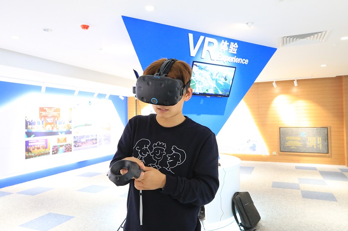 In addition, there are monitors showing several videos that MPRO had created, including promotional, informative and fun themes. The activity that attracted many visitors so far is the Virtual Reality (VR) set-up, where visitors can put on the VR glasses and engage with a 3D map of the new UIC campus at Jintong road. The virtual reality environments let visitors explore different parts of the new campus from the dormitories to the stage of the new UIC hall as well as seeing a bird’s eye view of the Jintong campus. This exhibition is becoming a must see at the new campus and does a great job of explaining the history of UIC in depth.