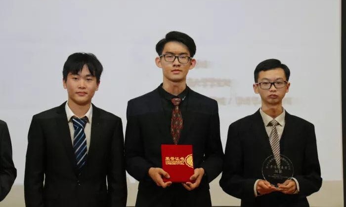 Year 1 DBM student, Mr Pan Tai-Lai, holding the award