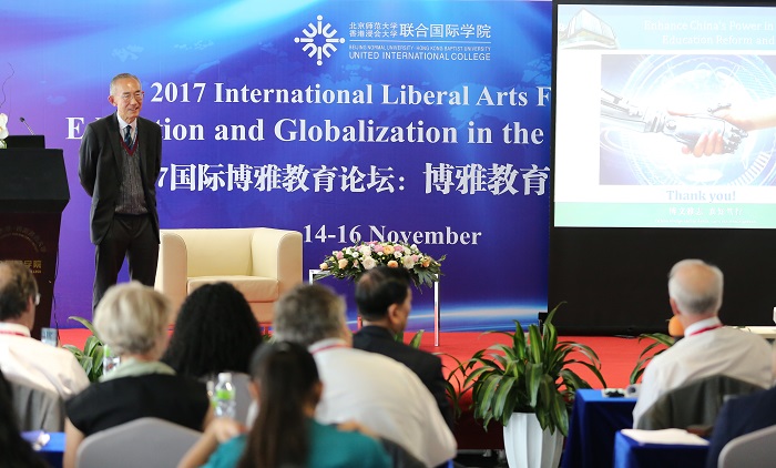At the beginning of the round-table, the president of Trinity University, Professor Danny J. Anderson, expressed his gratitude towards President Ng and the entire UIC staff for their hard work. He also announced that he was deeply impressed by the activities presented as part of the liberal arts forum. After, President of Hendrix College, Prof William M. Tsutui, brought up the topic of international liberal arts teaching. He discussed with Prof Anderson and the other delegates how they can globalize liberal arts.