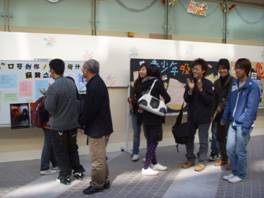 | Teachers and students paid their attention to the non-smoking exhibition board designed by students. |