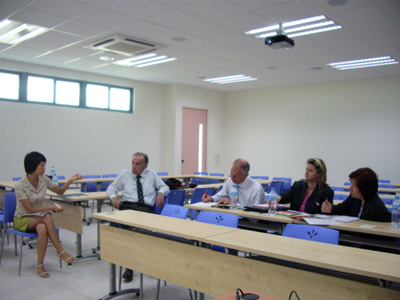 When Mr. Juris Wulfius finished his introduction, the three visitors, Prof. Hockings and Ms. Anna LI, Deputy Director of International Affairs Section of UIC, discussed the possibility of establishing relationship between the two institutes. They exchanged gifts afterward.